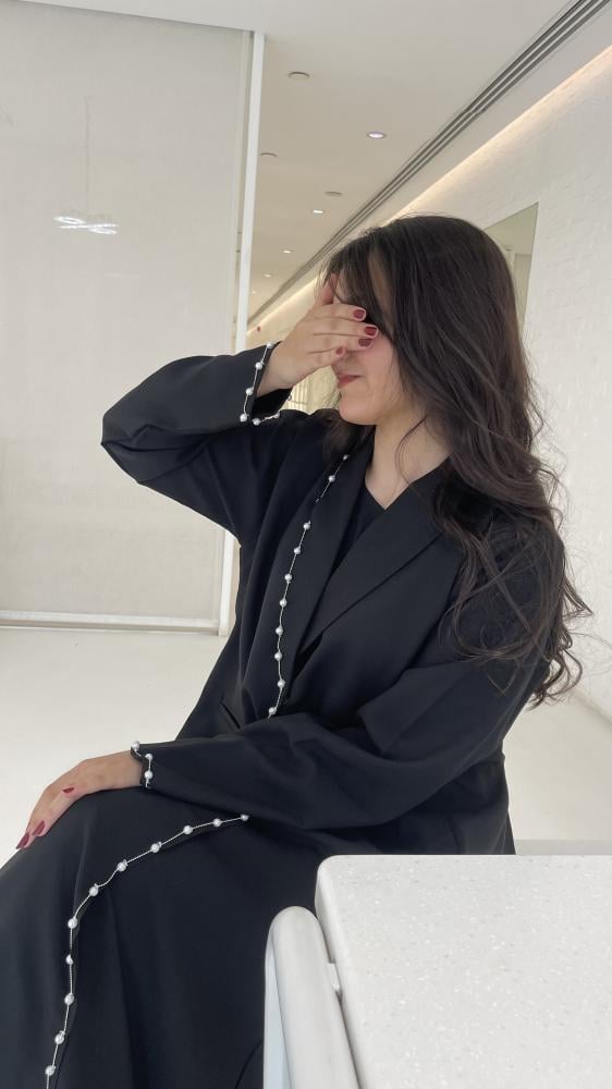 - القماش : كريب كوري ، سواده فاحم ، عملي ( لايحتاج الى كوي ) ، راكز ورسمي 🪄 .