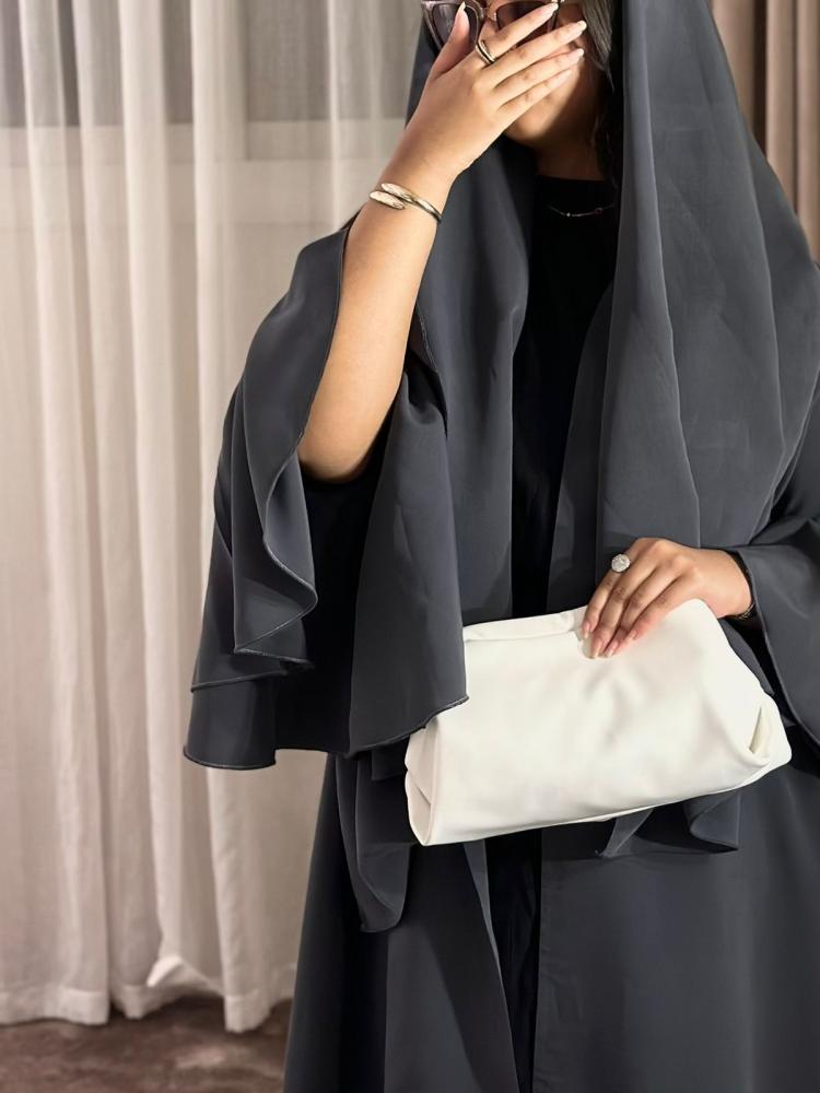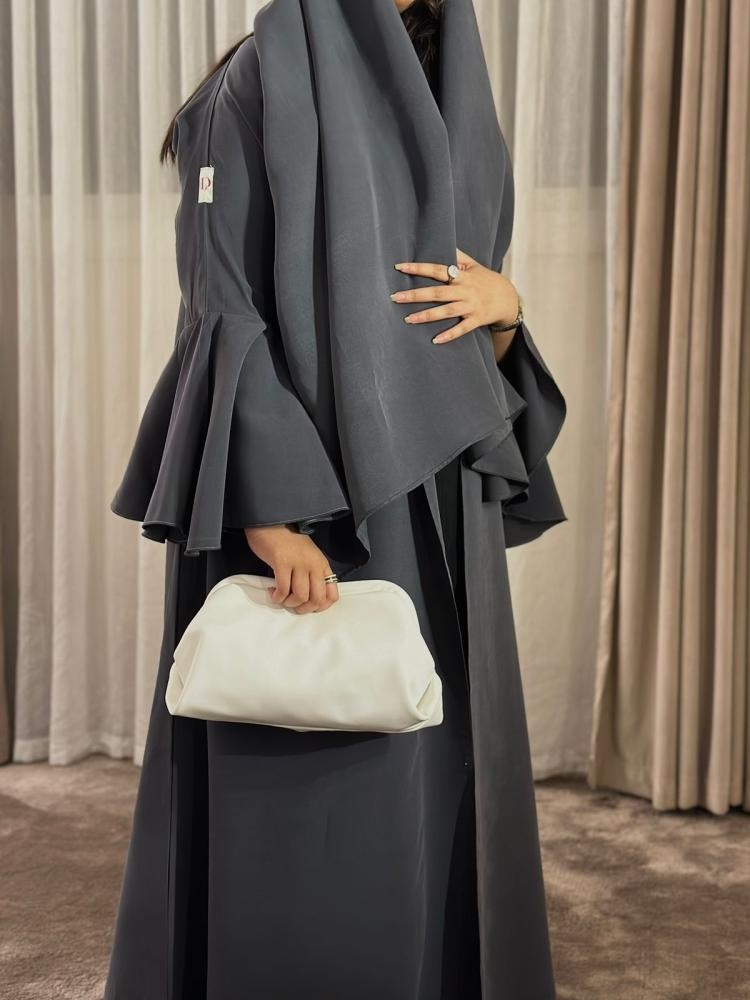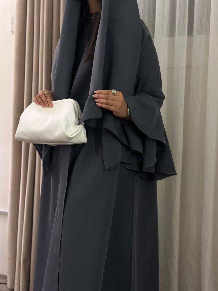 عباية D-18 القماش : حرير ياباني اللون : بترولي الموديل : لف - نص كلوش - مع اكمام كلوش الطرحة : نفس قماش العباة (حرير ياباني )