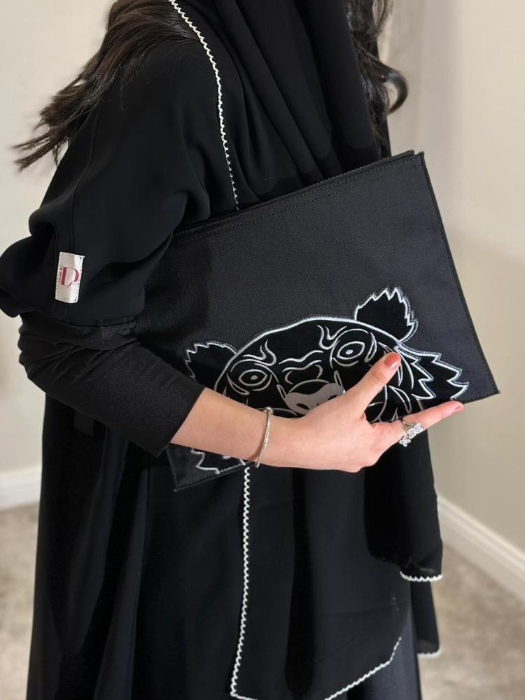عباية D-14 عباية بأكمام استرتش وطرحة بطرف ابيض القماش : كربب كوري باارد وصيفي الموديل : لف - نص كلوش مع طرحة بطرف أبيض