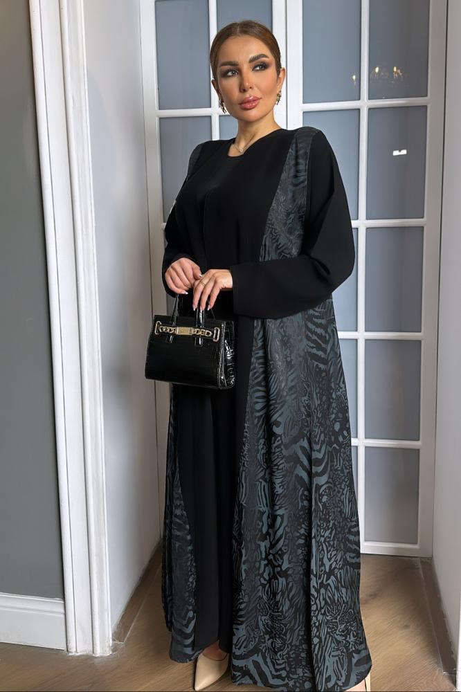 عبايـة D-16 القماش : سيراميك اندونيسي مع تايقر الموديل : لف - نص كلوش - جوانب العباة تايقر الطرحة : اسود مع طرف تايقر