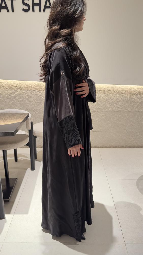 - القماش : حرير مغسول ياباني اسود مع الاكمام خامتين بلون رمادي وخامة تايقر