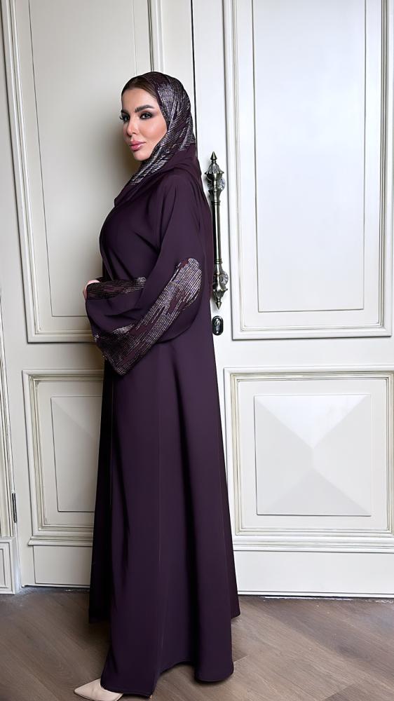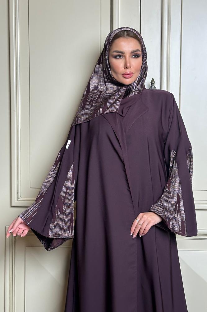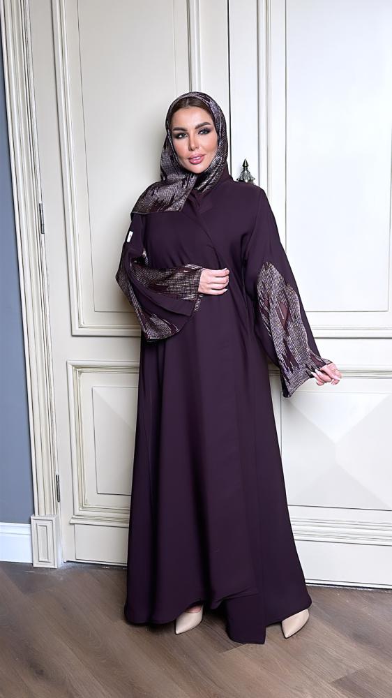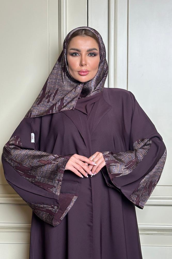عبايــة D_19 عبايــة لف بقصة كلوش الاكمام حرير مشجر- القماش : انترنت صيفي مع طرحة نص شيفون ونص حريـر اللون : عنابي - كحلي